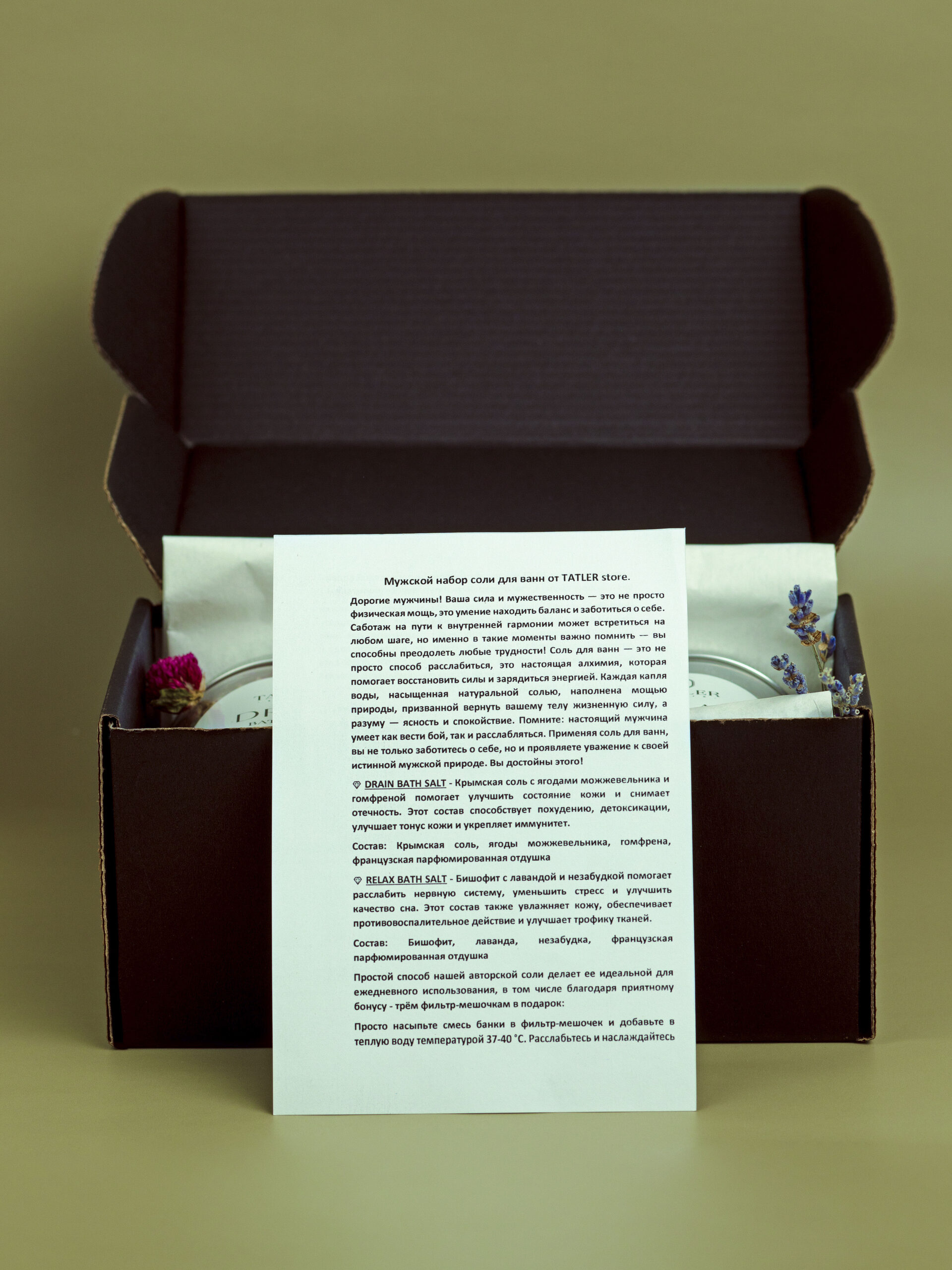 Ваша сила и мужественность — это не просто физическая мощь, это умение находить баланс и заботиться о себе. Соль для ванн — это не просто способ расслабиться, это настоящая алхимия, которая помогает восстановить силы и зарядиться энергией. Каждая капля воды, насыщенная натуральной солью, наполнена мощью природы, призванной вернуть вашему телу жизненную силу, а разуму — ясность и спокойствие.