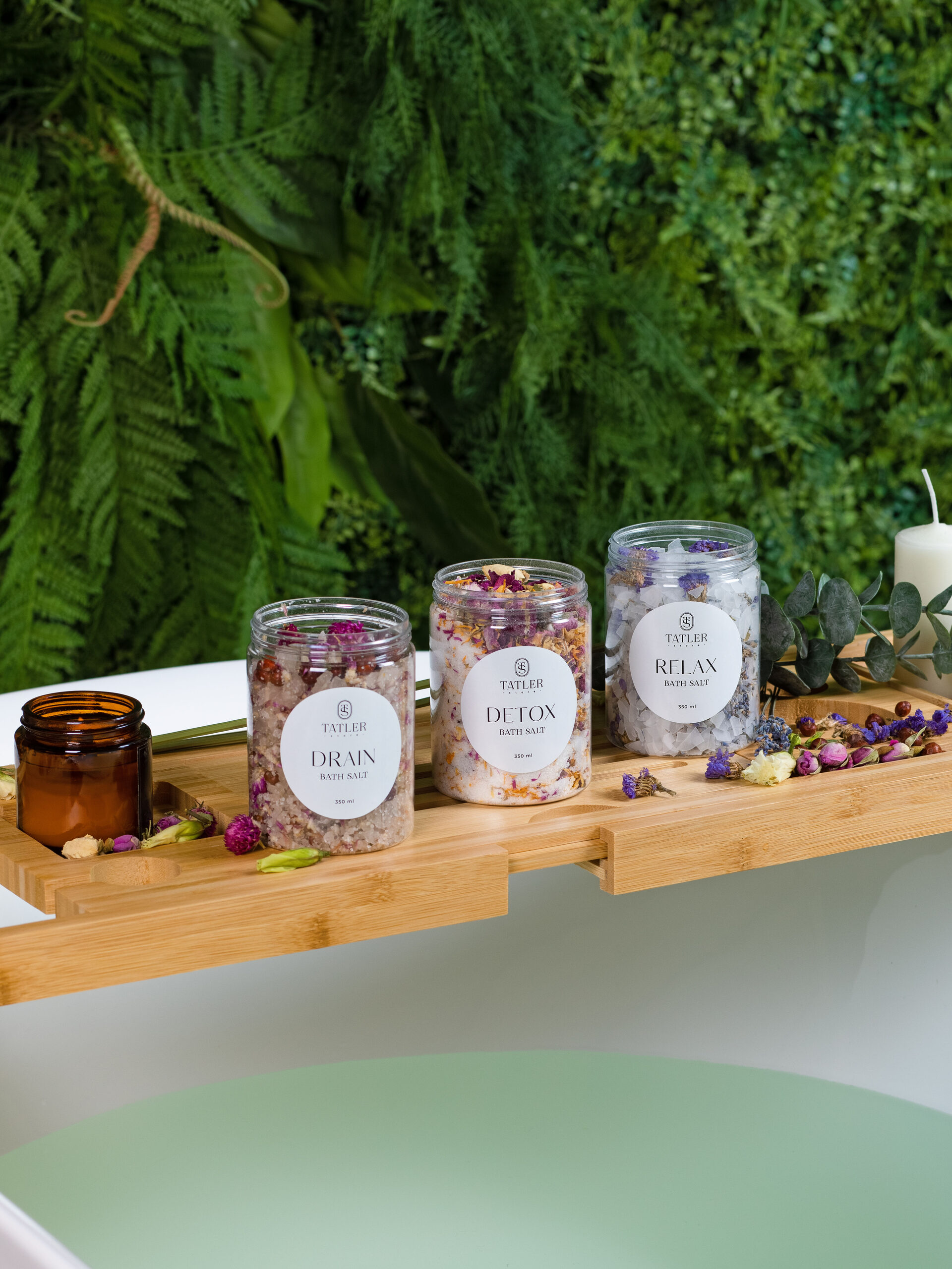 1. Дренажная морская соль DRAIN BATH SALT с ароматом кедра и можжевельника (объем 350 мл) для похудения, детоксикации, укрепления иммунитета Состав: Крымская соль, ягоды можжевельника, гомфрена, парфюмированная отдушка Гомфрена – обладает противовоспалительным действием, снимает зуд и воспаление кожи, способствует заживлению ран Ягоды можжевельника – устраняют отечность, уменьшает боль в суставах и улучшает их подвижность. Оказывающее действие: лимфодренажный эффект, снимает отёчность, способствует похудению, способствует детоксикации, снижает выраженность целлюлита, повышает тонус и упругость кожи, способствует разглаживанию мелких морщин и укрепляет иммунитет, улучшает сон.